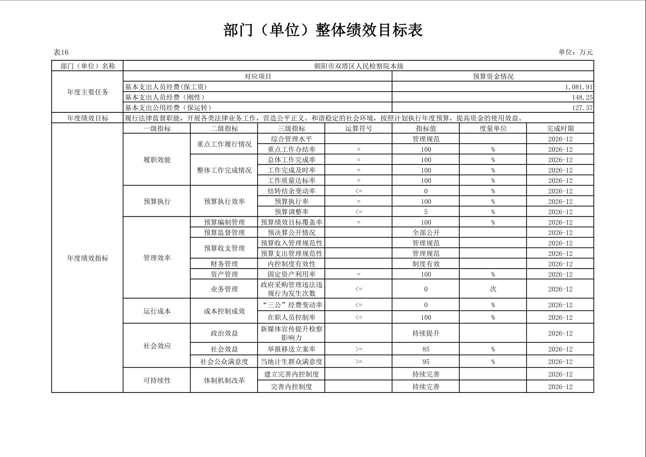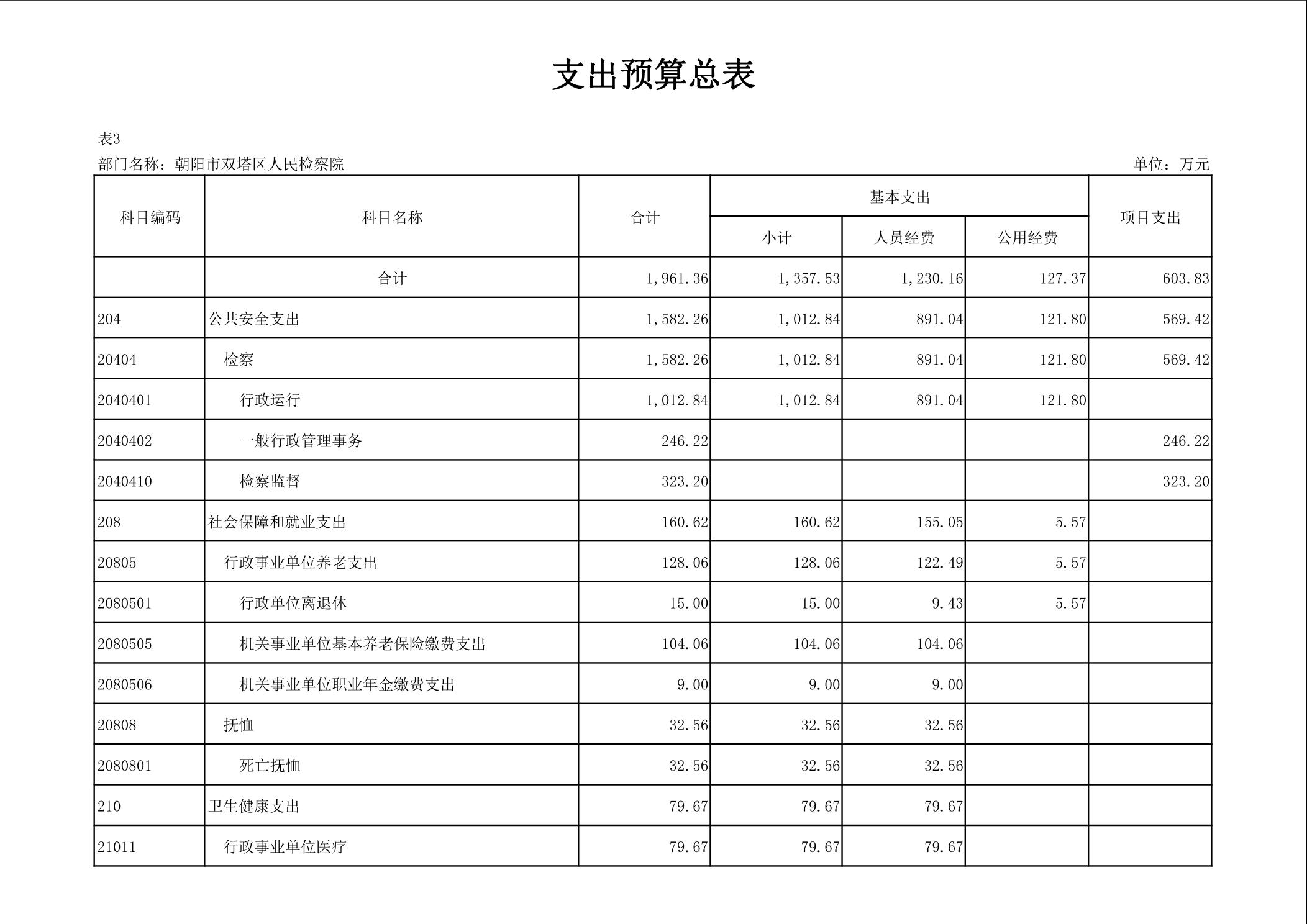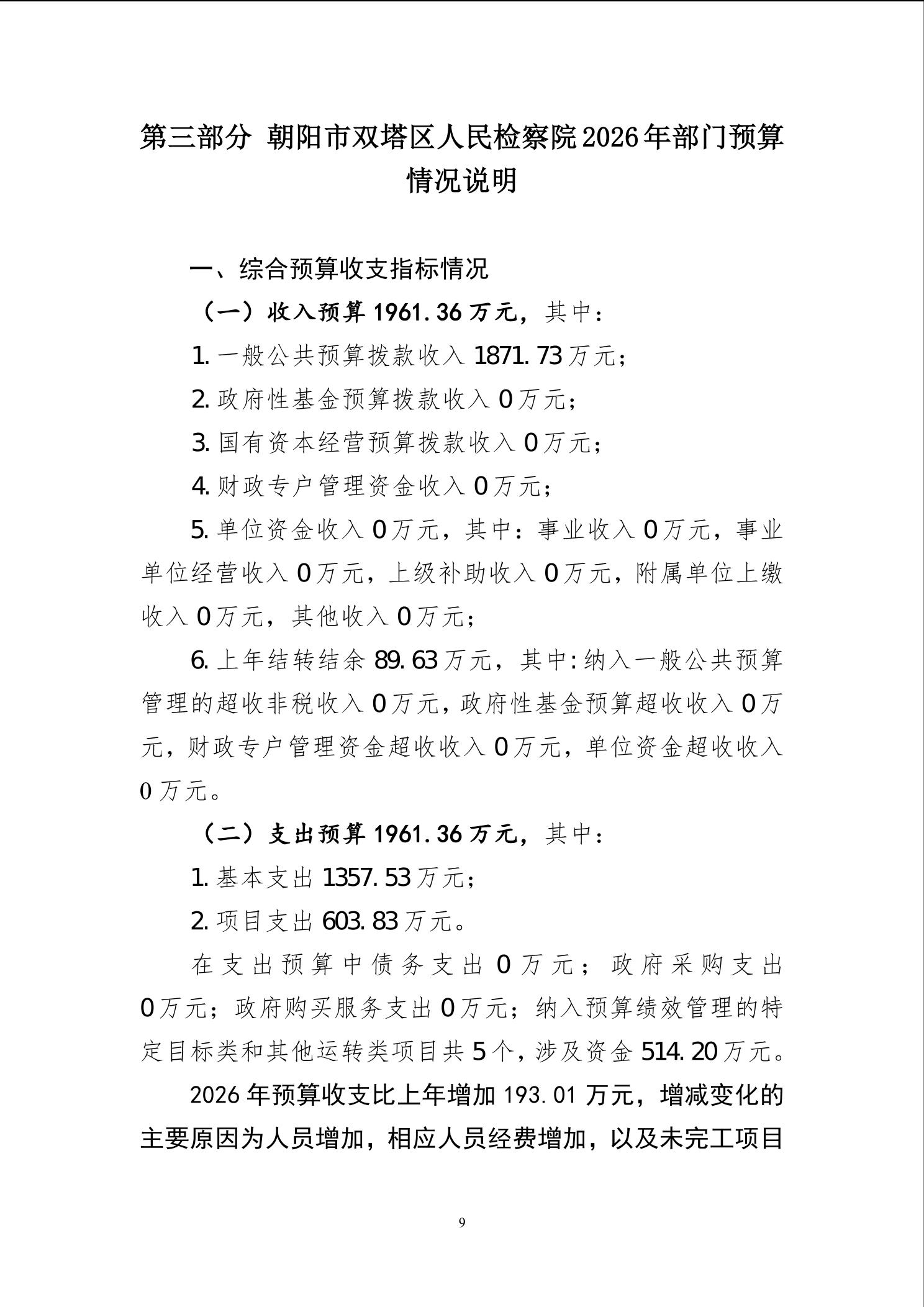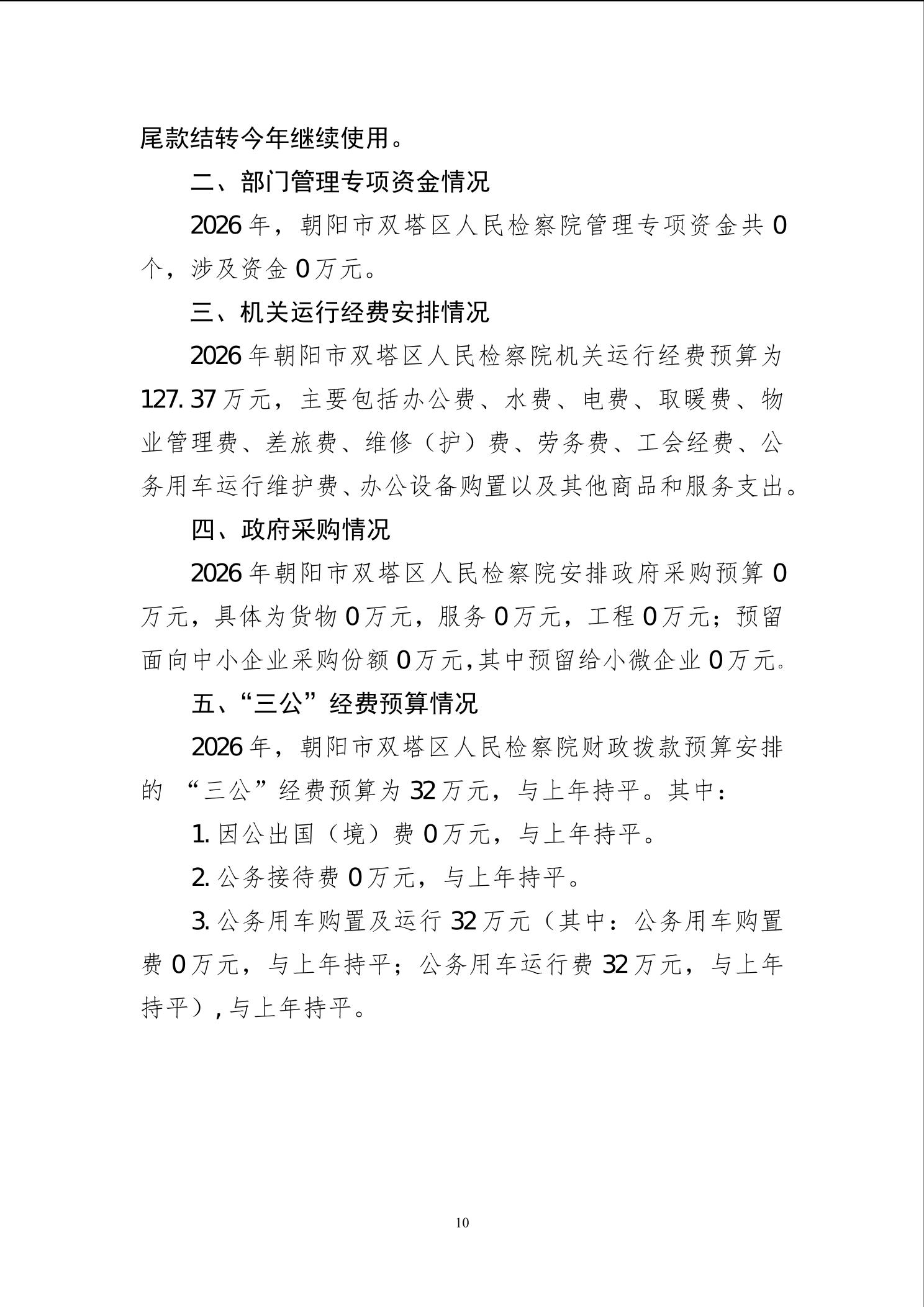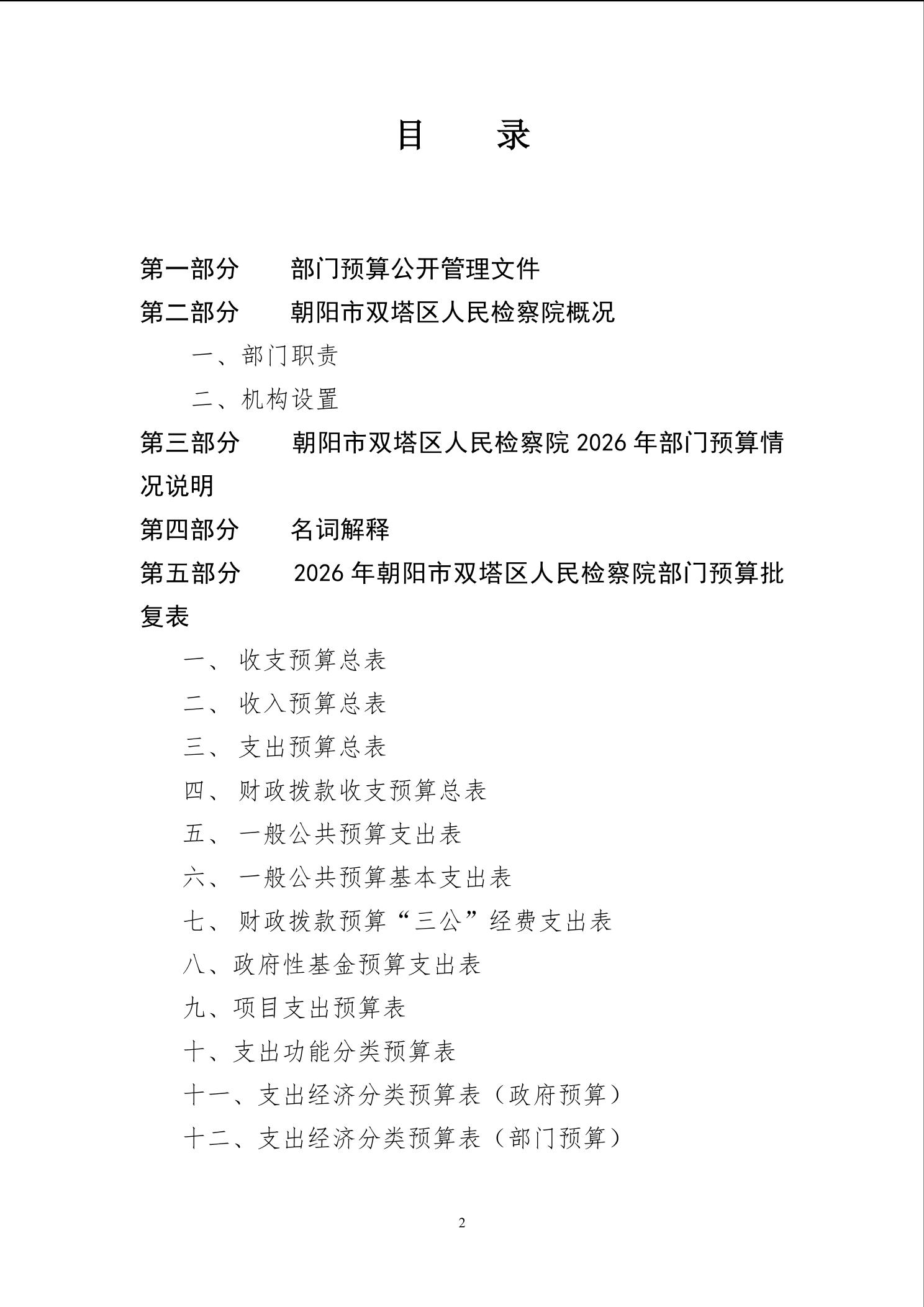 朝阳市双塔区人民检察院 2026年度部门预算