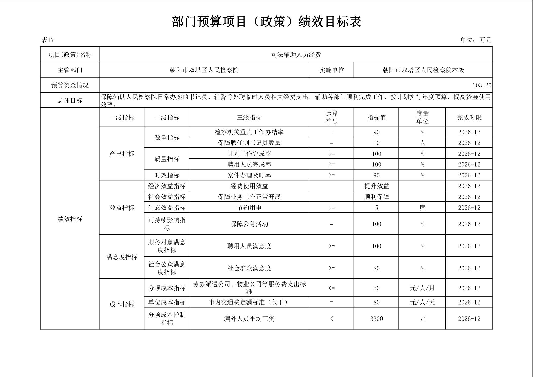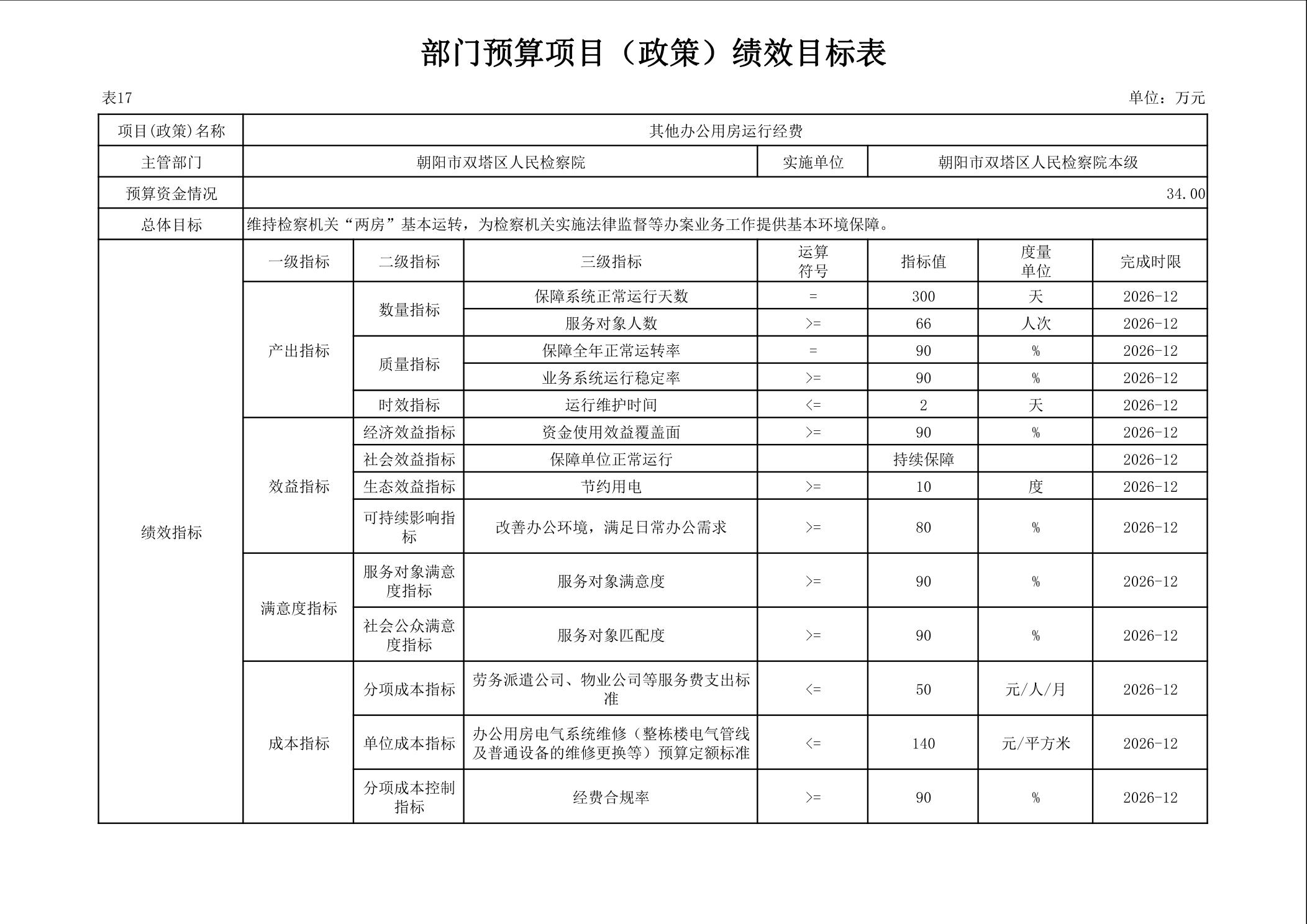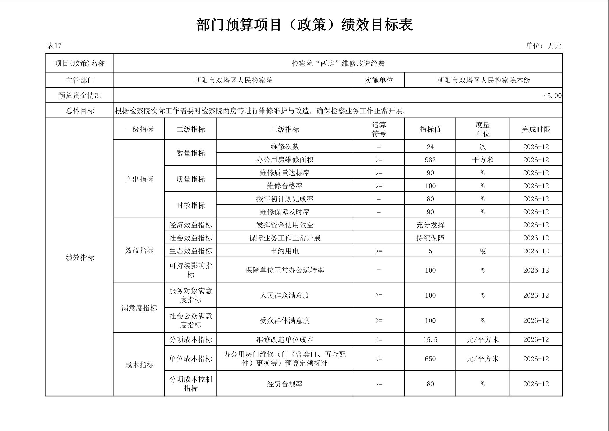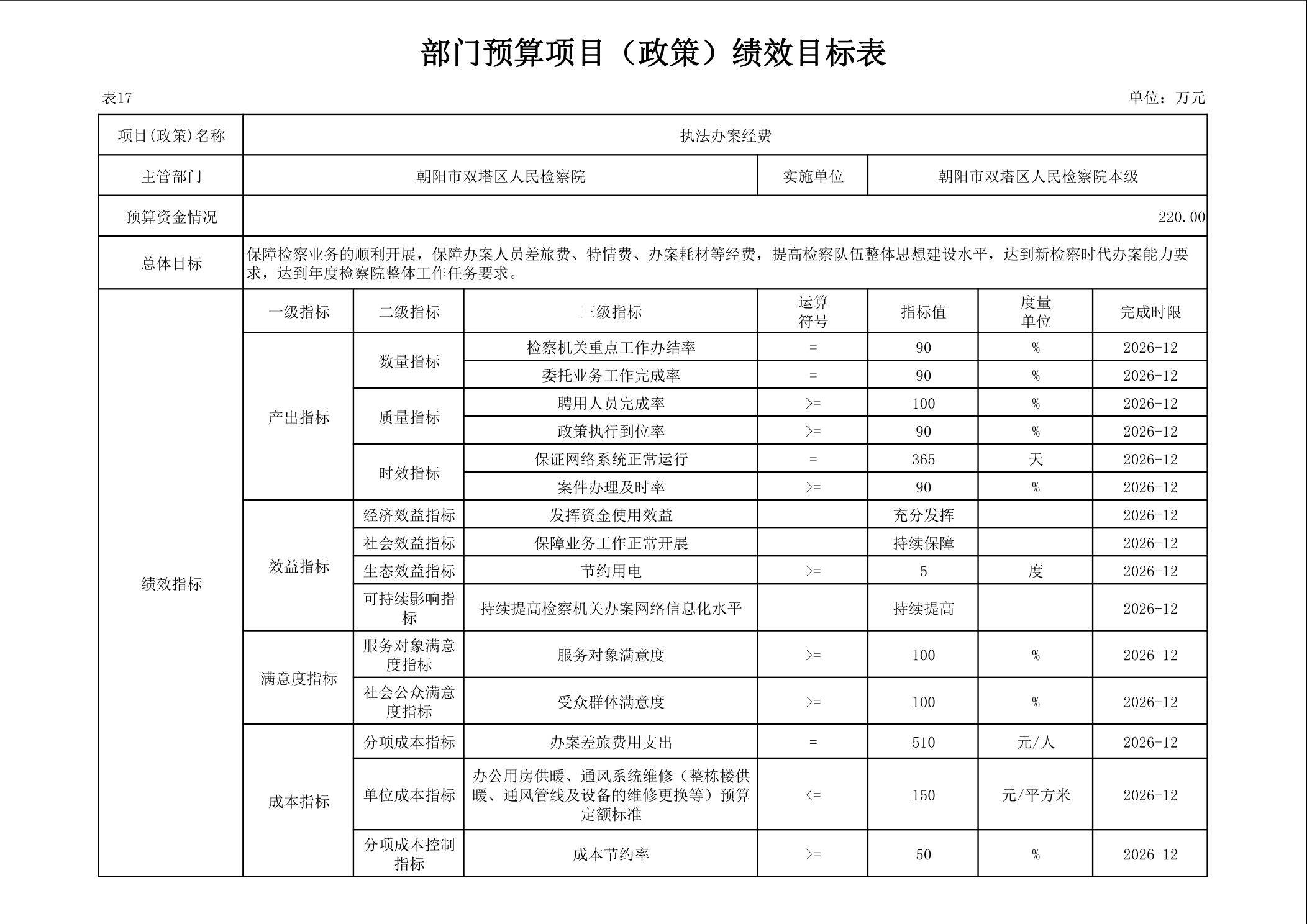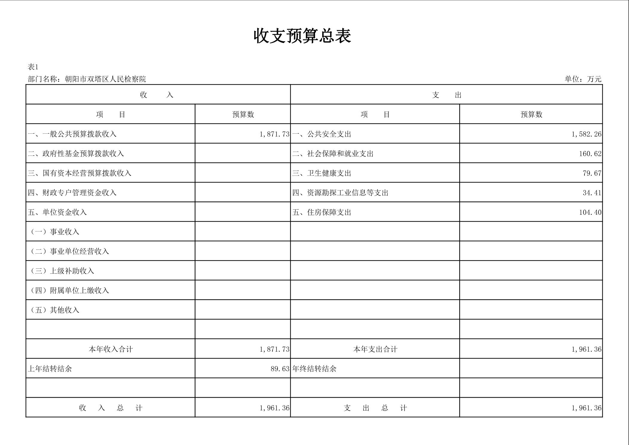 朝阳市双塔区人民检察院 2026年度部门预算